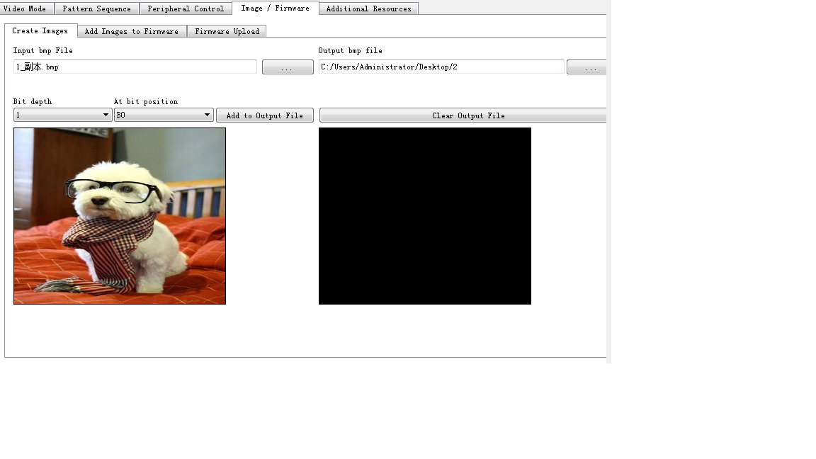 你们好。我们入手了你们一块的DLP4500的评估板,在使用软件生成24位图像时,912*1140的图像可以导入,但是无法导出我们想要的24图像。如附件所示,导出之后是一副黑色的图像,我们也按照那个使用手册看了,不过还是有问题,希望指导,谢谢。
