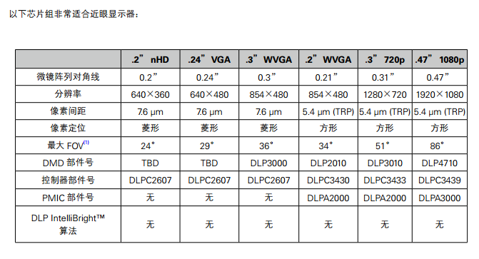 TI的DLP技术方案,提供了近眼显示的整套解决方案: