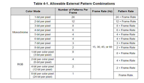 我希望使用lightcrafterEVM(DLPC300)以每秒钟4000帧的速率投影类似这样的图片(二值化的BMP图片),那么请问