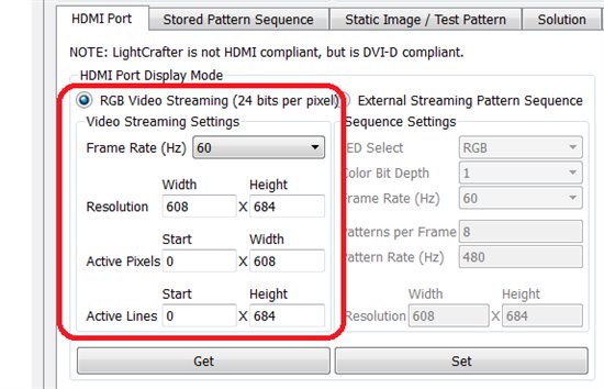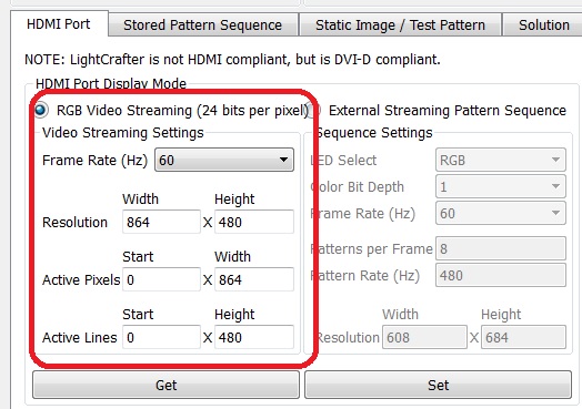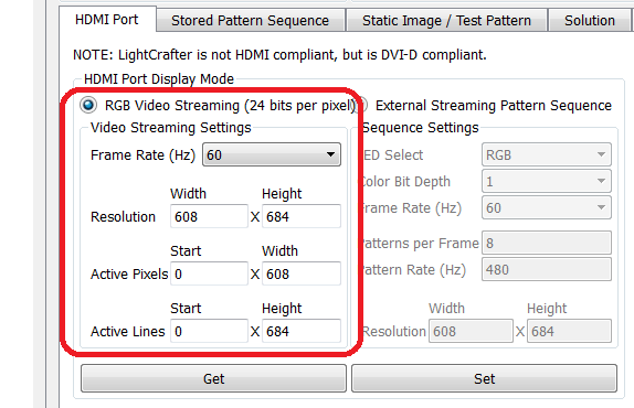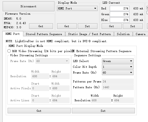 2.怎么使用HDMI模式加载External Streaming Pattern Sequence? 设置为HDMI格式后,再点set完全没有反应,怎么加载我要播放的片源呢?