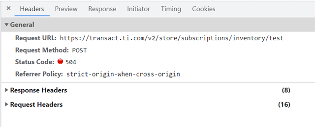 Inventory Subscription API 订阅回调地址已正确配置,且接收订阅的接口能被正常调用,但是调用该测试接口返回状态码504,请问这是什么原因?