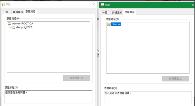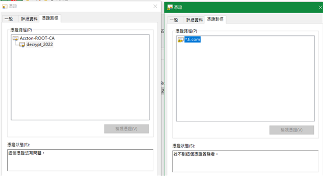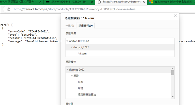 我透過 https://transact.ti.com/ ,点击左侧的锁,获取完整的证书 發現最底的一層無法得到完整簽章路徑 ,請問你信件是否是zip 或是cer 附檔,我們信箱系統會過濾,是否可以將附檔名再加上.txt 提供 (ex:ti.cer.txt)