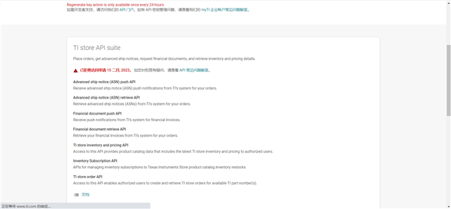目前对 API 的访问权限是有管控的,应该是内部的审核没有通过,您可以继续使用 ti.com 的订单方法结账。如果您觉得您的请求被错误地拒绝了,请联系您当地的销售代表提出支持请求