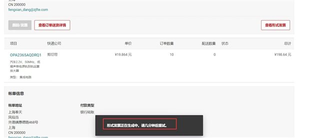 TI-API: 客户使用API下单后,官网登陆账户无法下载发票。