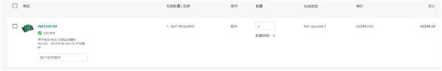 { "errors": [ { "errorCode": "ERR-TICOM-INV-API-1002", "type": "ResourceNotFound", "section": "Path", "field": "tiPartNumber", "reason": "Resource could not be found", "message": "tiPartNumber ('INA236EVM') does not exist. Please correct the format (see https://e2e.ti.com/search?q=faq%3Atrue&category=forum&group=452&date=&customdaterange=0&startdate=&faq=true&sort=date%20desc&faq=true#) or verify that the part number is valid on TI.com and resubmit your request" } ] }