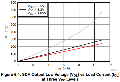 我们排查下来,MCU TC397 的的配置问题排除。 I2C 信号到达TI TCA9548 之后, 低电平开始变成540mV。 请协助排查TI 器件是否有使用限制。