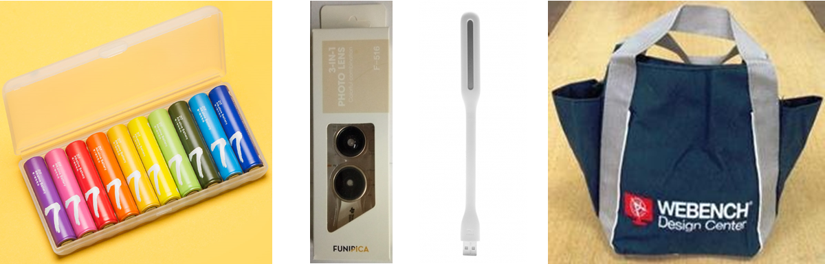50个小拎包(人手一个)+ 10组小米彩虹5号和7号电池组合(随机抽奖) |