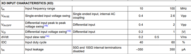 一般来说,输入时钟最好用方波,因为它的上升/下降时间比正弦波快。可以用正弦波,但需要确保数据手册中满足XO输入特性。