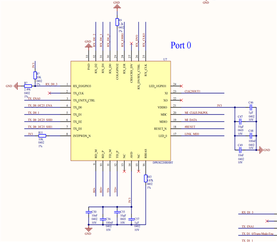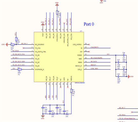 TI的工作人员您好:我使用DP83822进行ETHERCAT主站与从站的通信,DP83822在从站端,与ET1100连接,配置为MII模式,百兆以太网通信。目前通信失败,用示波器测量DP83822的引脚,现象如下: