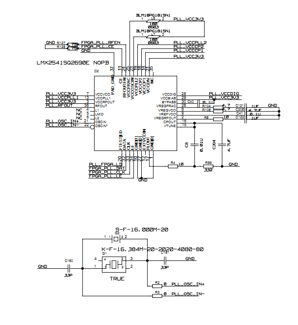 之前用晶振25M配置出锁定的100M信号后,想通过信号源给25M也能配置出来,通过信号源给SMB在给PLL芯片,出来的频率有偏差,而且没有锁定。
