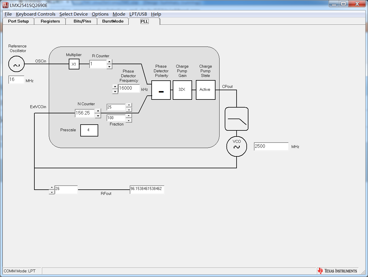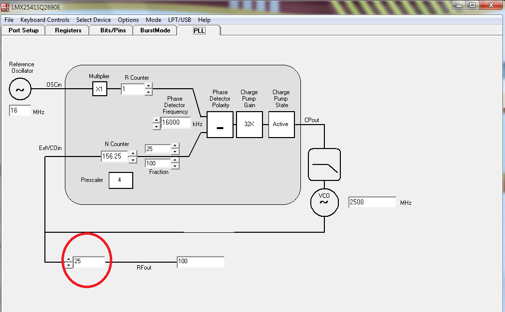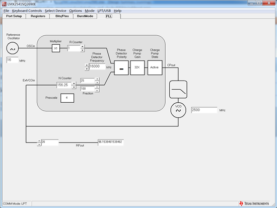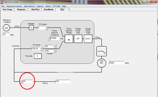 下一步可以设置为N divider输出或R divider输出看是否和预想的一致