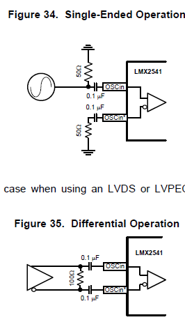 你好,我用示波器测了下输入信号,差分一端为正弦波,均值大概是1.5V,峰峰值大概是1V,另一端为0,频率是正确的16MHz。这样说明输入信号应该是对的,还是配置的问题。