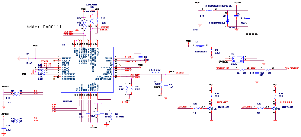 硬件如下图所示,不晓得什么原因会导致插网线开机与不插网线开机reg(0x00)不同,求指点!!!