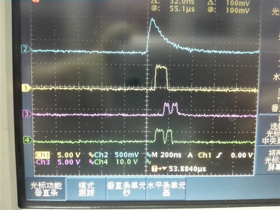 图例,4信号就是比较器上升沿触发的信号,有两个波,本来应该只有一个。