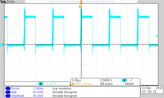 (1)通过观察寄存器,发现Vtune lock detect一直不对,当把R1的CPG值从0设置到1时,Vtune lock detect正常,但是R6里面VCO detect还是0,同时通过LD观察到Analog lock detect也为0。请问会是哪里问题?而且当CPG的值设置为0时,Anolog lock detect的情况很奇怪,图中为波形。