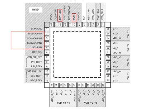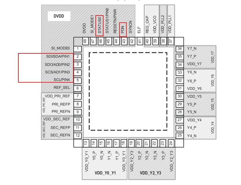 最近设计一块C6678的板子,使用CDCM6208提供时钟,板子做好了才发现一个问题:CDCM6208的SPI等管脚(下图中红色框部分)接到了FPGA的1.8V的bank上了, 而我给CDCM6208提供的电源都是3.3V的。现在是不确定需要怎么修改电路,不知道将DVDD这部分电源改称成1.8V的是否可行,现在项目其他接口都已调通,就差这个时钟电路没完成,不知道最简单的修改方法是什么?