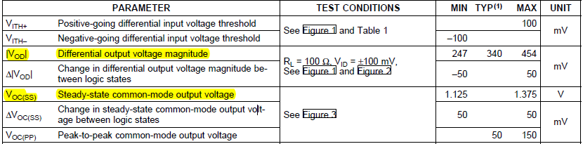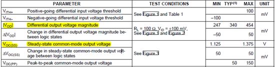 如果测试点正确,应该是Y脚和Z脚应该是在以大概1.2V的共模电压上下摆动,差分电压350mV左右。你确认下测量的地方对吗?不要点到了输入A和B端