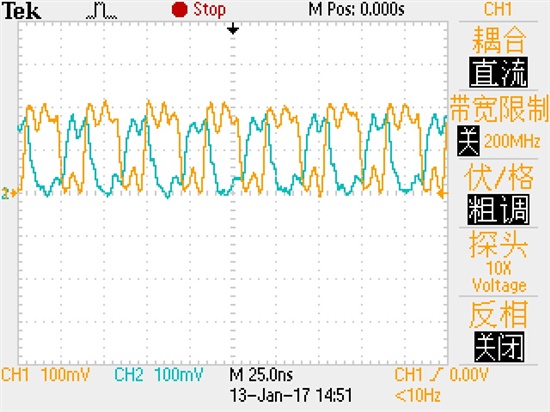 下面是SN65LVDS116的Y和Z脚输出波形图,但是根据手册描述,他们的共模输出电压不是应该在1.125-1.375V么?他们不是应该在1.2V左右上下摆动么?