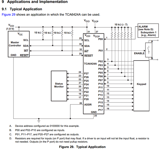 TCA6424A工扩展了24个GPIO口,在此想问下一下问题:
