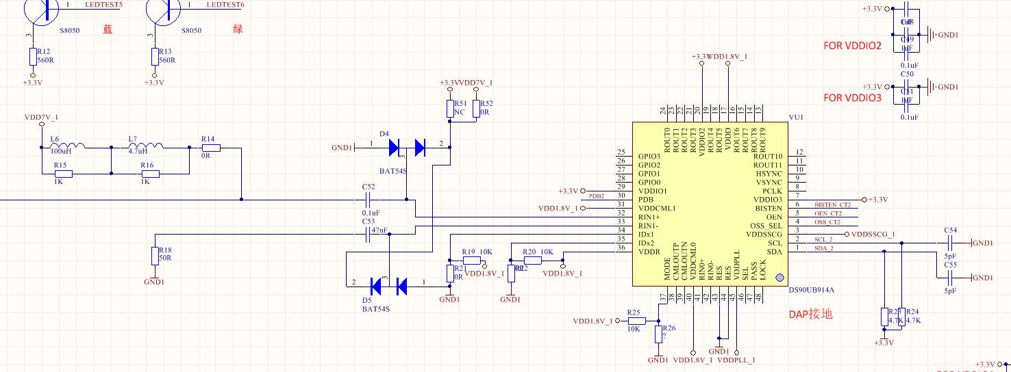 1:914与913配套使用,由914端屏蔽同轴线供电给913,经检测913端3.3V,1.8V电源供电稳定