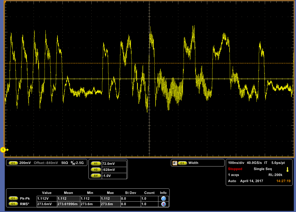 我们使用了贵公司的DS91C176这块芯片搭建了一个M-LVDS总线的硬件电路,经DS91C176芯片出来的信号直接并联至总线上,匹配电阻选择的是100欧姆的电阻,总共有14块板卡进行通信。注意到数据手册上有标明适用于ATCA和uTCA的设备,这两种设备是什么样的设备呢?怎样的设备既是ATCA设备和uTCA设备?同时注意到给出的匹配电阻80欧姆是在ATCA设备时的,如果为其它的设备,匹配电阻应该为多少呢?我们测试时得到的波形如下图所示,匹配电阻为100欧姆,请问有什么方法可以改善信号的质量呢?