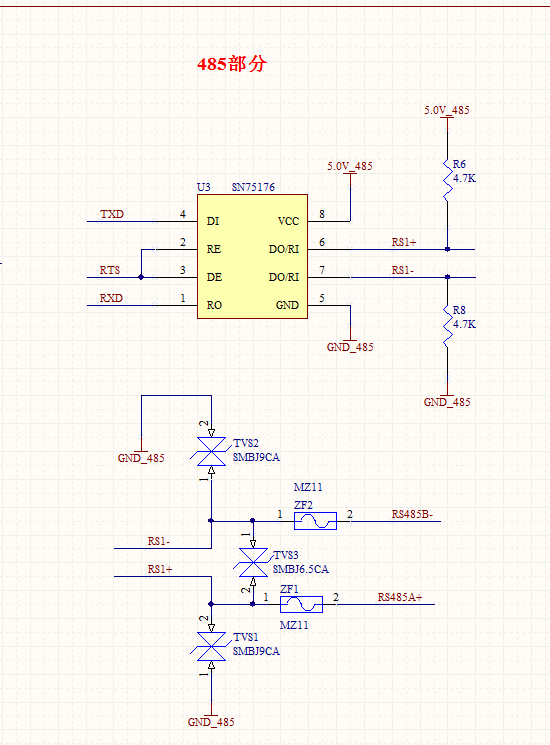 附件为SN75176BDR电路,SN65HVD888芯片可以直接在该电路图上替换SN75176BDR芯片,实现无极性485通信?如果不可以,应该怎么更改电路图?程序是不是也要做相应的更改?
