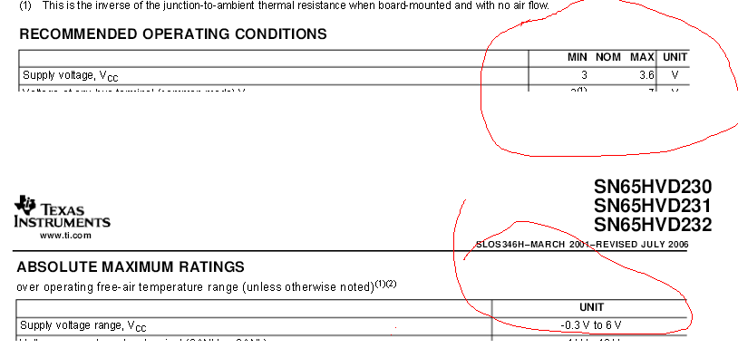 要参考3V~3.6V的范围是推荐使用的电气参数。 不仅仅是这款芯片,TI所有的其他芯片也都是参考的“Recommended Electrical Characteristic”。