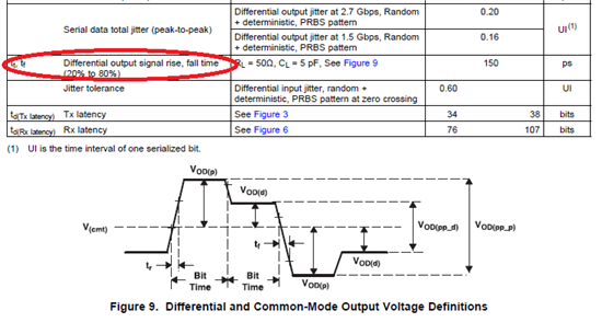 这个150ps指的是发送端的rise time 和fall time的值,但是我要的是2711的接收端的判决信号上升下降沿时间上限,也是150ps吗?这个值我手册里面查不到,对我使用2711的接收地检非常重要,谢谢!