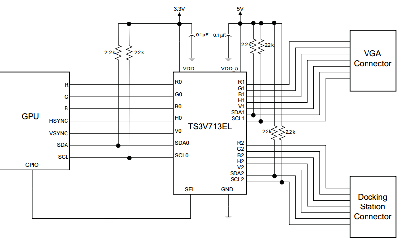 如果是这样的话,switch是实现不了的,以上图为例,指的是两个sink通过SEL信号高低电平来和source(GPU)进行选择是和谁导通。