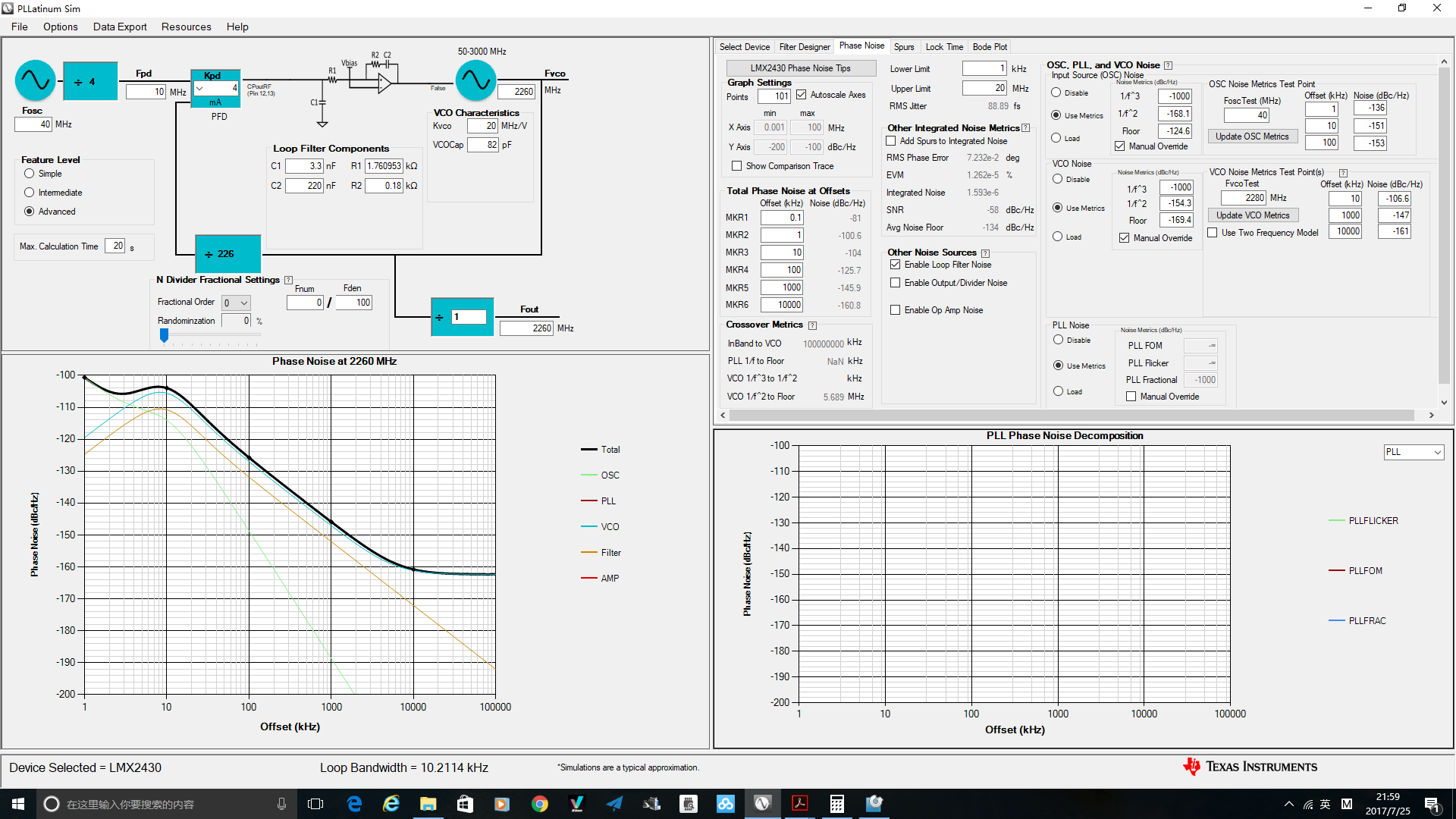 第3点是指PLLatinum Sim给出的loop filter电路图跟LMX2430 datasheet上typical user case不一致。