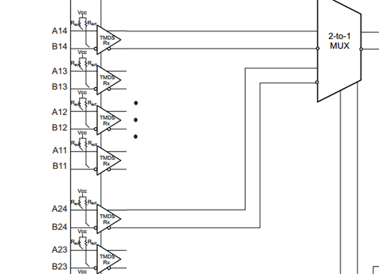 SOC (模块化供电)的 HDMI输出直接接到TMD251的A14-B11,因为我认为我的SOC 输出的HDMI TMDS信号(1.8V电平)不在TMDS251如第三图要求的Vic范围内,TMDS信号可以直接由SOC连到TMDS251吗?求解答。感谢。