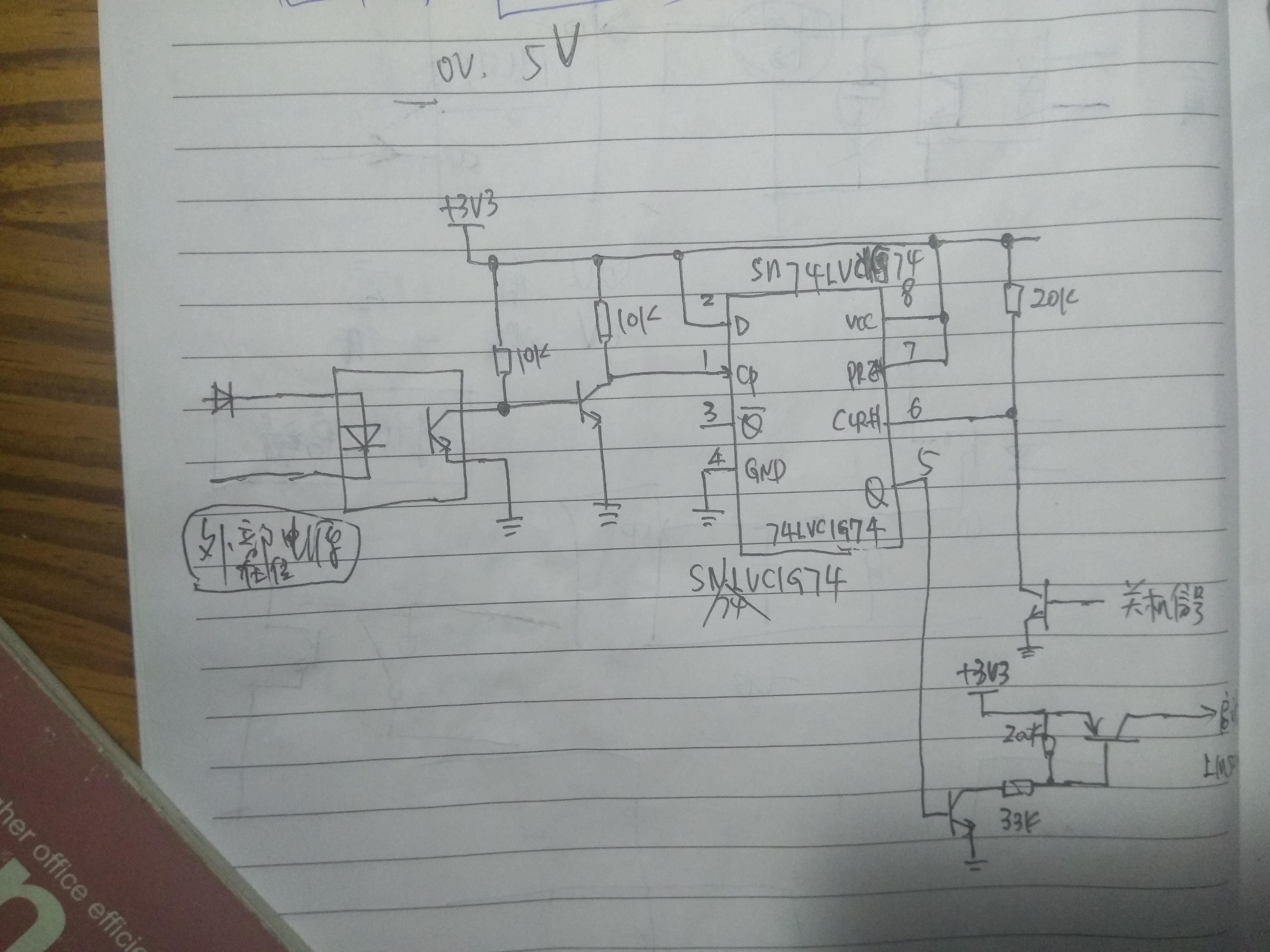 如上图,选择SN74LVC1G74作为一个启动电路,要求外部电源出现的时候,CP输入引脚有一个上升沿,使Q输出高电平。这个功能能够实现。