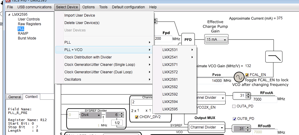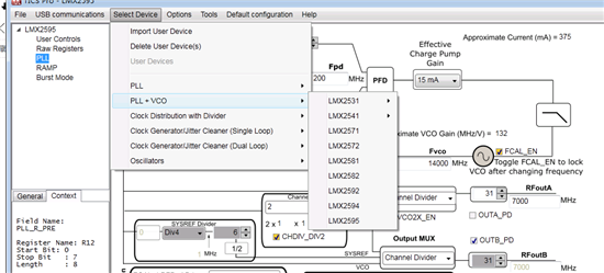 有问题请教Ti的技术支持:从Ti下载了PLLatium Sim软件,该软件里Select a Device中没有LMX2572的器件选择项,难道就不能设计LMX2572了,是不是LMX2572型号太新,PLLatium Sim软件还没有来得及将软件更新?