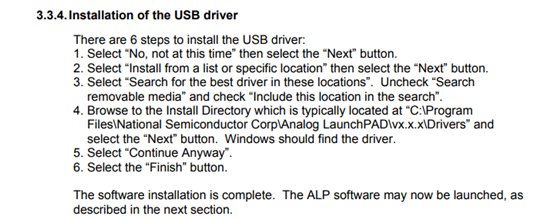 电脑上安装了 Analog LaunchPAD , 但始终不能找到USB的驱动