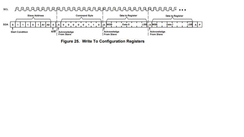 从datasheet中给的写时序来看,当发送一个command byte之后,收到ACK之后紧跟着写的data是这个command 对应的data。