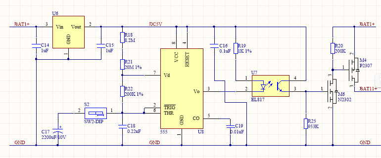 目前我有个项目用到了TLC555I芯片,用于实现关电持续12小时,开电持续5分钟的设计要求,