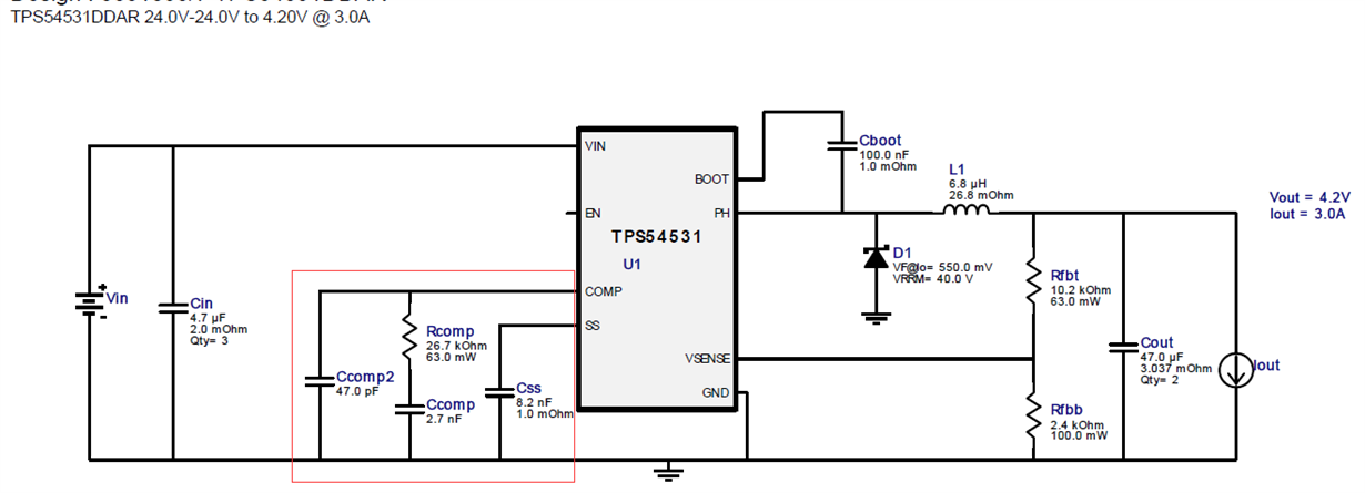 TPS54531中输入都是24V,一个输出4.2V 3A ,另外一个输出5V 5A,使用TI的仿真软件后,发现有些参数不一样。想看看能否统一。谢谢!