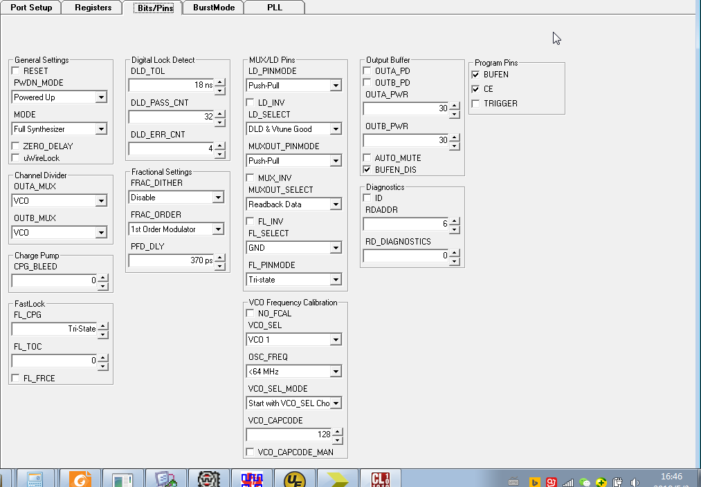 RT。我使用一款LMX2581时钟芯片,输入20MHz,输出2400MHz。通过clock code等软件得到寄存器值,从reg5-int,reg15到reg0。每个寄存器值回读后与我设计的一致,但是没有锁定和没有输出。其中回读reg6,显示为0X1831_1CC0,查看datasheet后,发现vco_detect为0,vco_rail_high为1,DLD为0,LD_PINSTATE为0。更困恼的是,回读的REG6中,VCO_SELECT为0,这与我设计的VCO选择VCO2,不符合。是否怀疑芯片无法响应配置寄存器?