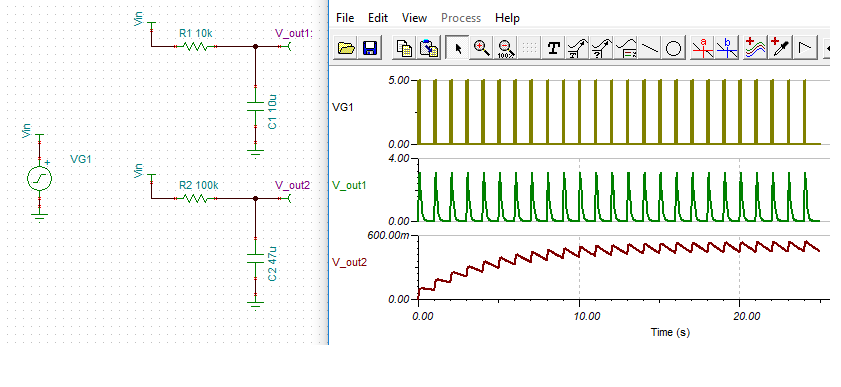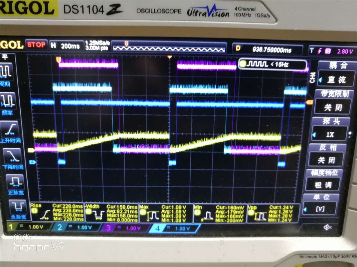 正常情况,按照鉴相输出滤波后的直流应该接近1V左右,但是不清楚为什么我在接入RC滤波后鉴相输出就消失了?我的RC滤波参数为R=10k, C=10uF,由于我的输入为1Hz信号,所以需要RC带宽很低。