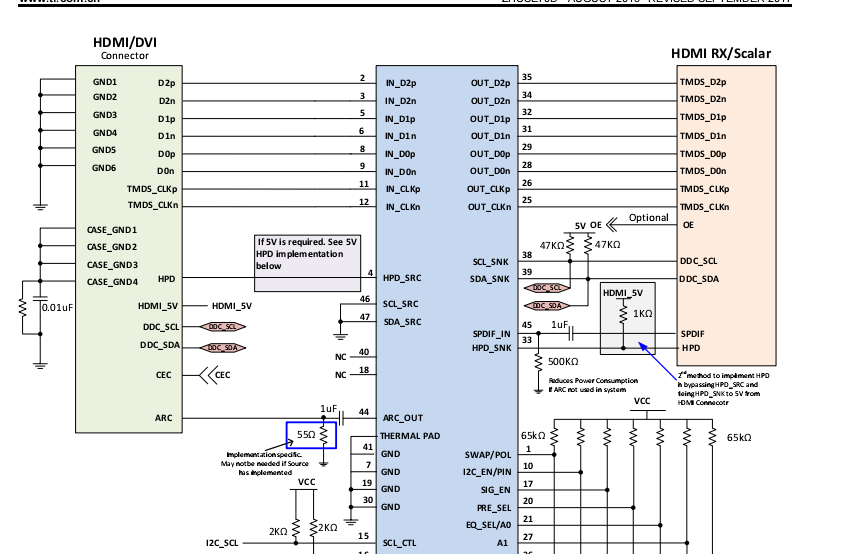 2、我们没有使用TMDS的DDC,因此38、39未使用5V上拉,这样是否可行?