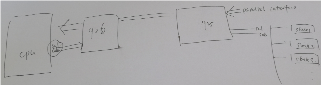 926 925 拓扑如下,主要想实现cpu-i2c-926-925-i2c-slavex,去配置slave。然后再讲业务数据读回来;