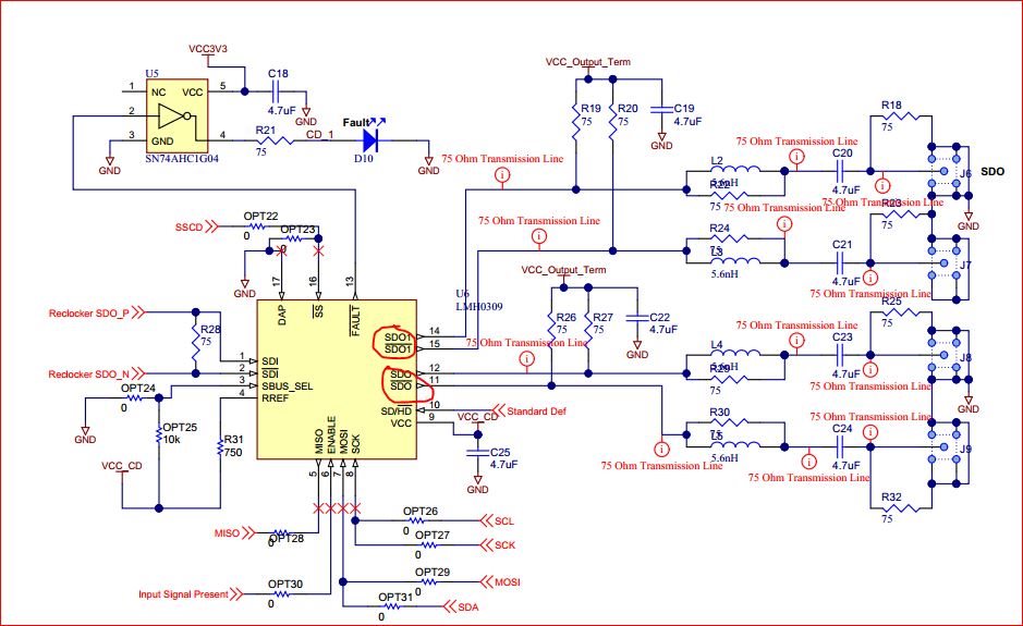 1、如下图,这个片子是两路差分输出,但是为什么官方给的下图中是四路单端信号输出?这样用法可以?我总感觉不对。还有就是下图的这个片子的型号是不是不对,我没有查到LMH0309这个型号。 2、类似于下图中的这个片子或者DS30BA101这个片子,到底输出端的每一路差分能不能当成两路单端来使用?
