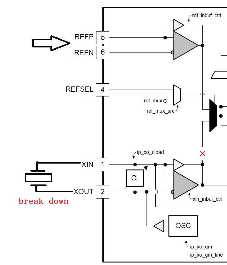 您的意思是将REFSEL拉高,使用REFP,REFN输入是吗?而不是XIN输入?