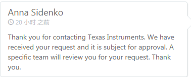 LINK点进去就是我截的第二个图,说有人review , 转寄的mail给我回复的是 nobody , 我不知道是不是把我的邮箱拉黑名单了,可我是刚注册的TI帐号呀