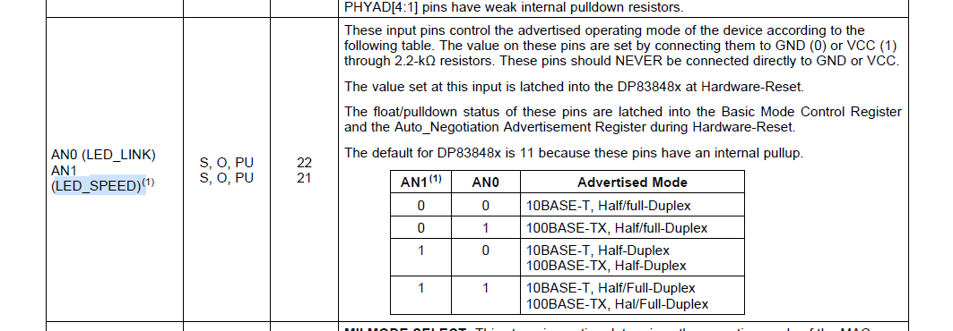 因此,我们需要将 "DP83848J" 芯片,最开始的状态设置为 10M网络,且默认为 10M网络。