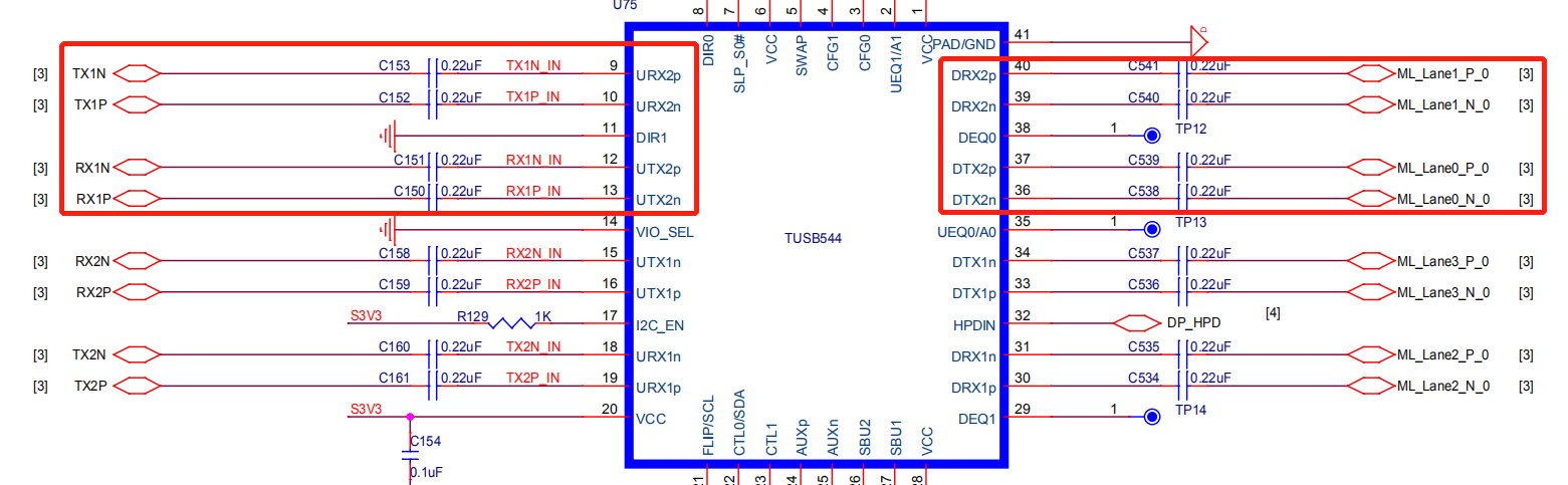 我使用TUSB544做USB-C转DP,高速信号线是否可以交换连接,输入输出的TX RX交换,输入的TX RX的P N都交换,这对信号会不会有影响