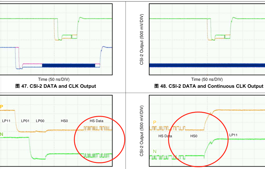 对于数据,为了匹配数据表中的波形,必须探测其中一个单端的数据通道的P/N信号,这是因为DPHY使用动态终端,所以信号在单端和差分之间周期性切换。