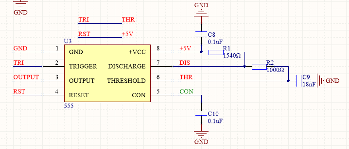 需要做一个差分直流电压到方波频率信号的转换电路,在频率产生模块使用的是SE555的datasheet中给出Figure 12. Circuit for Astable Operation 参考电路,在上电测试的时候,观察到,在输出21kHz的情况下,输出会随着时间慢慢递增,周围环境就是实验室电脑桌,无明显热源,温湿度与大气相近,考虑到可能是温漂,但是,频率递增是在上电初期半小时左右递增明显,大约2hz左右,随后会变成0.1hz/s的速度递增,对干扰反应明显,对电路人为吹气会让频率缓慢减小, 但是几秒之后又会继续增加。累计测试6小时,累计增加了0.3khz左右,几乎无稳定趋势。