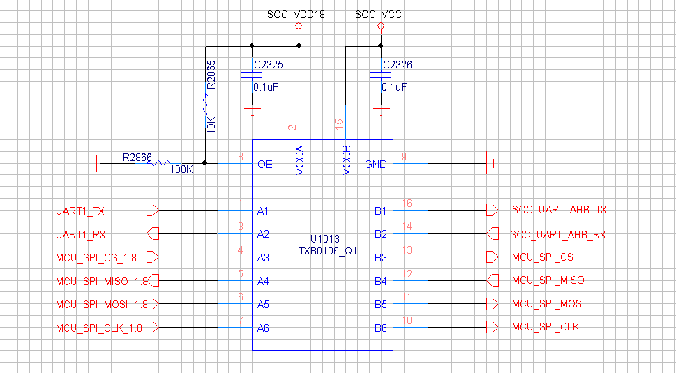 需要转换UART和SPI 使用TXB0106-Q1图纸如下,会有问题吗