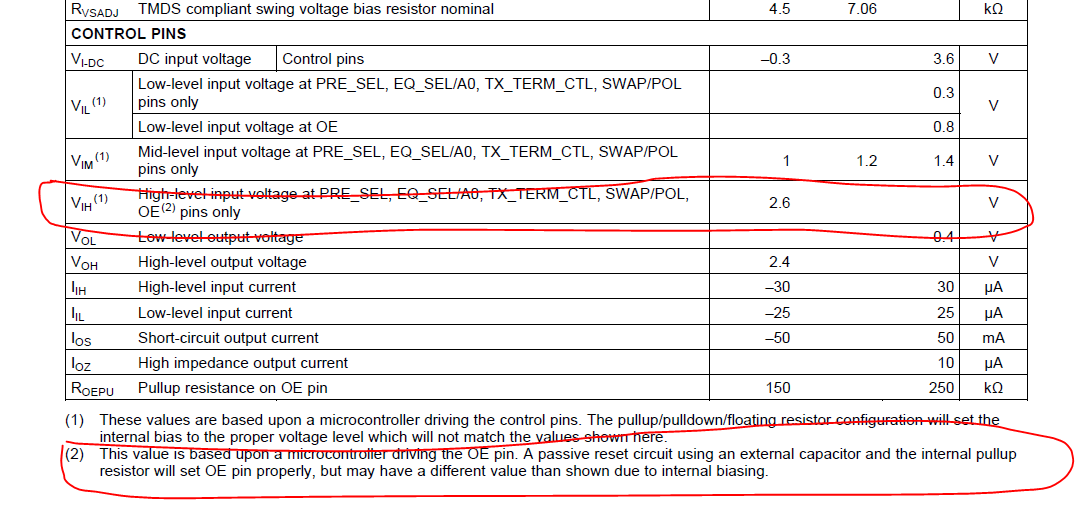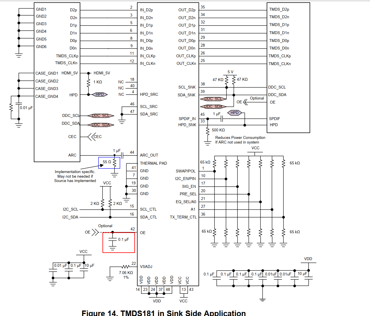 TMDS181芯片的OE引脚有以下问题,请帮忙确认:
